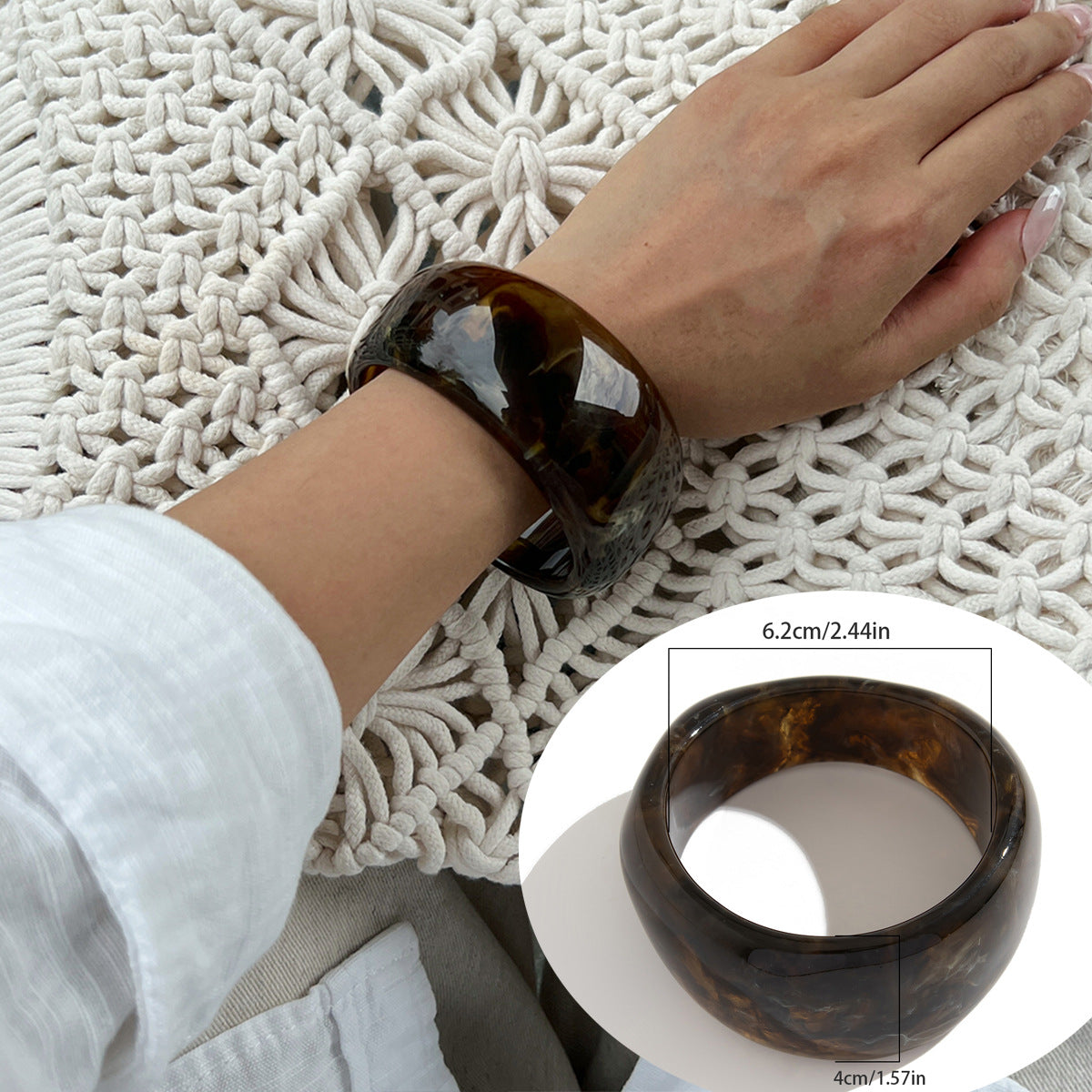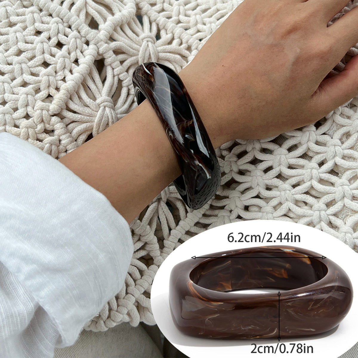 Our chunky resin bangles are designed to bring bold personality and effortless charm to any outfit. Each piece is crafted with a glossy hand-finished look, smooth edges, and a lightweight feel so you get the statement without the heaviness. With unique color patterns, durable construction, and a comfortable slip-on fit, this is the accessory you’ll reach for every single day.