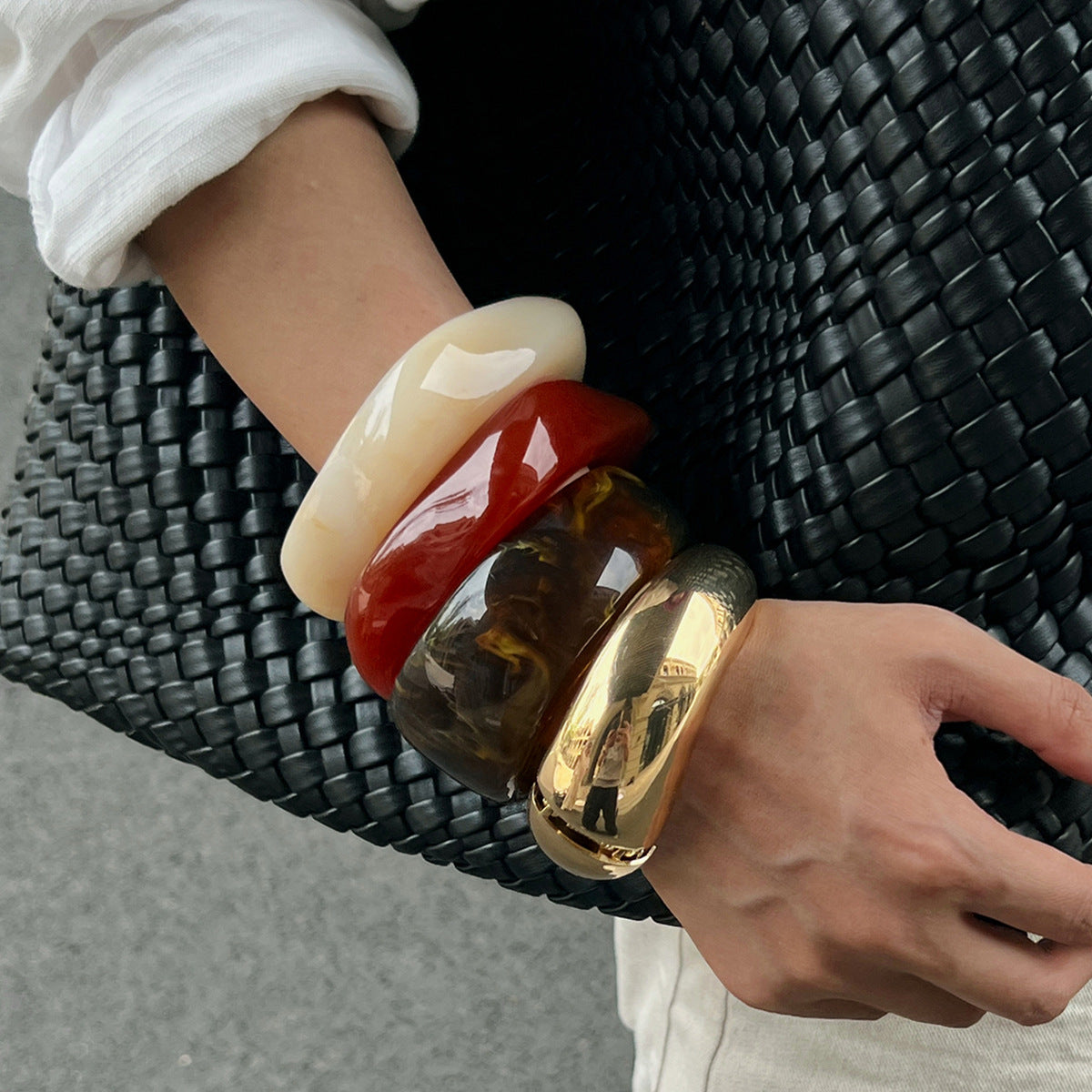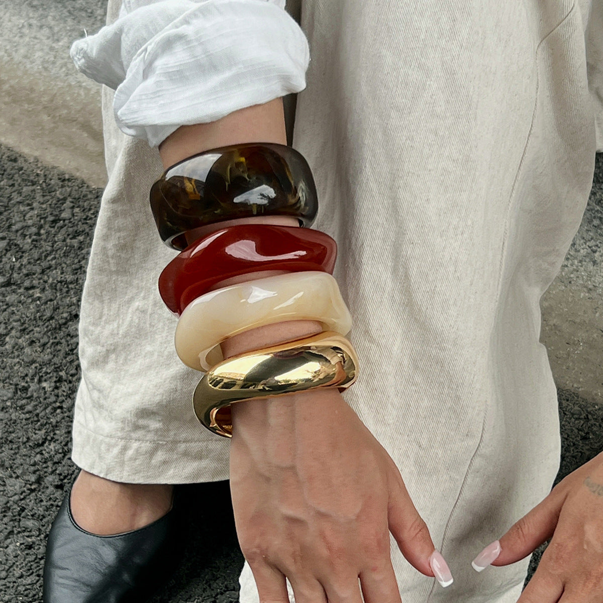 Enjoy the bold, chunky look without the weight. Our smooth resin finish feels soft on the wrist, making it comfortable enough for all-day styling, from morning coffee runs to night-out fits.