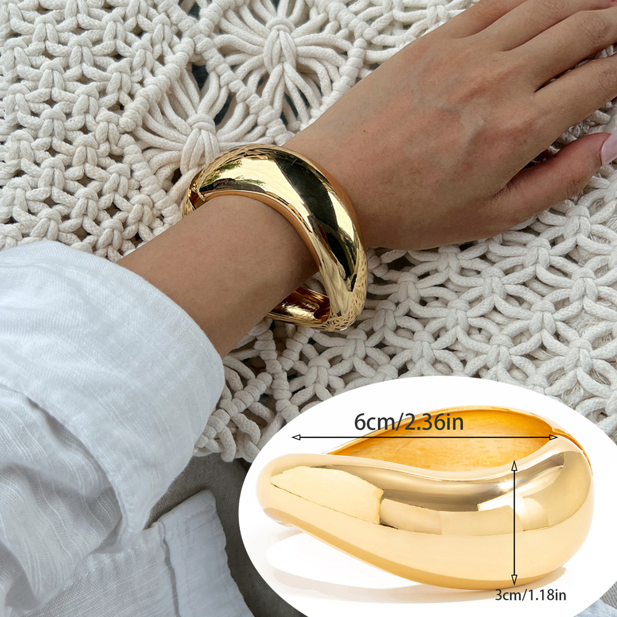 A sleek, minimalist gold bangle that gives your wrist a subtle, elegant shine. Ideal for stacking or adding a touch of everyday luxury.