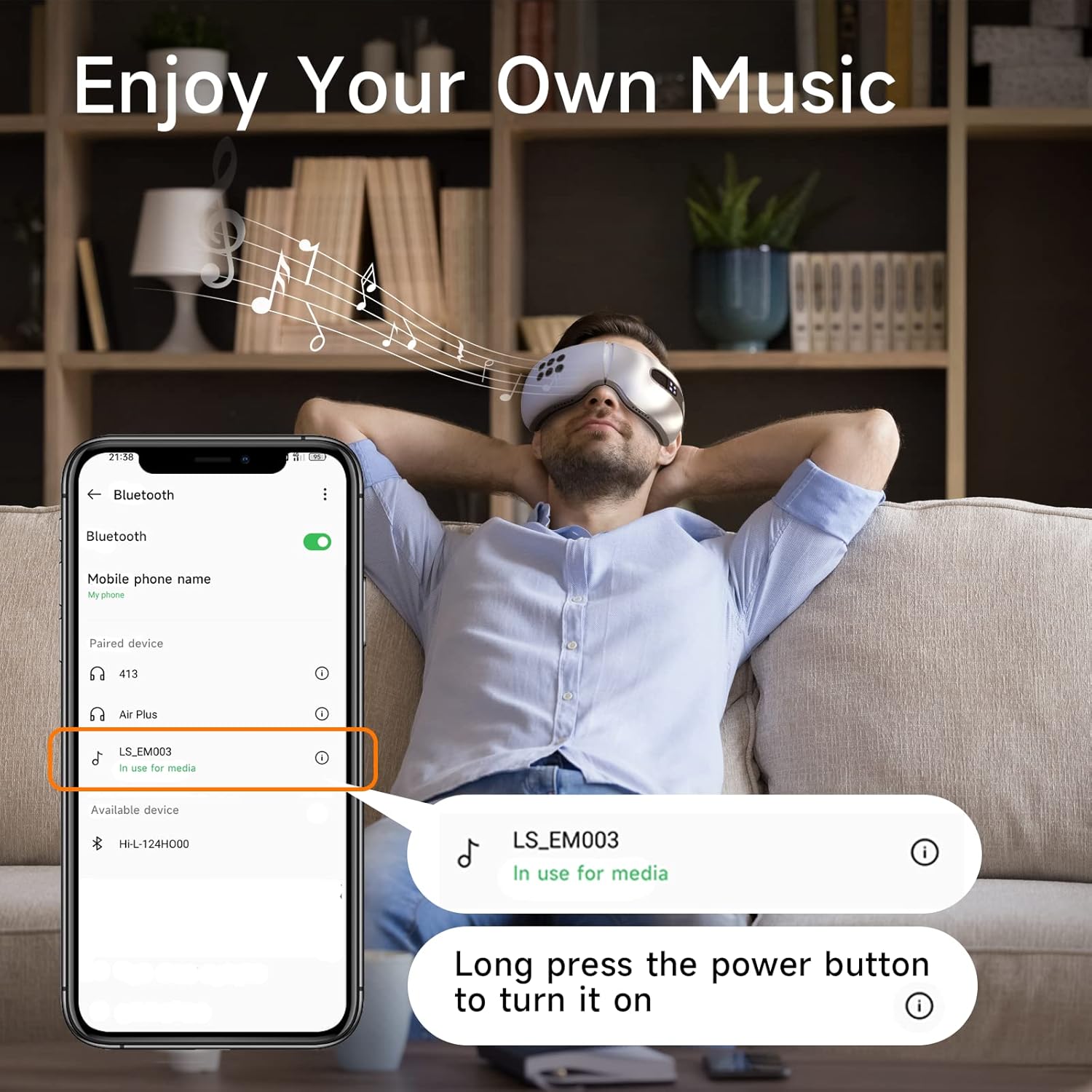 Features an ergonomic 180° folding fit, soft protein leather padding, and adjustable strap for personalized comfort. Bluetooth music integration helps you drift into deep relaxation.